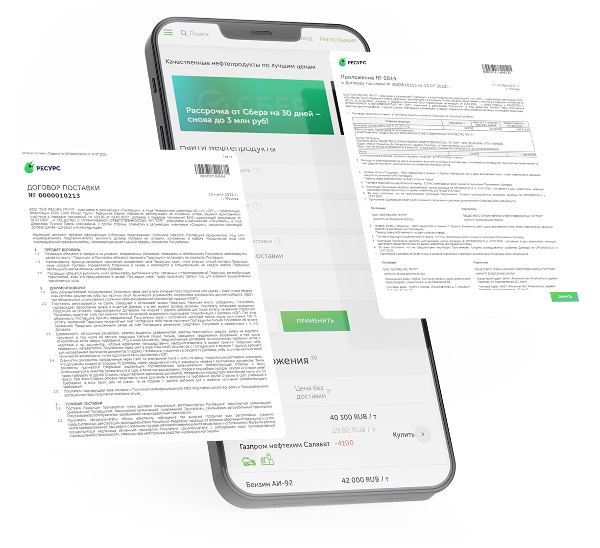 На маркетплейсе можно купить нефтепродукты в объеме от 5000 до 40 000 литров с доставкой и на самовывоз. Все заявки оформляются в личном кабинете или в мобильном приложении. Там же можно получить информацию по статусу заказа, первичные и закрывающие документы. Клиенты маркетплейса могут воспользоваться кредитными предложениями от ведущих банков и купить топливо в кредит. Денежные средства предоставляют крупнейшие банки России.